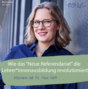 Dr. Flora Nieß ist Projektleiterin des Neuen Referendariats. Mia spricht mit ihr darüber, wie es entstanden ist und erhält einen Einblick in die Inhalte und Ziele dieses wundervollen und längst überfälligen Formats. Hier erklingt die Zukunftsmusik in der Lehramtsausbildung.